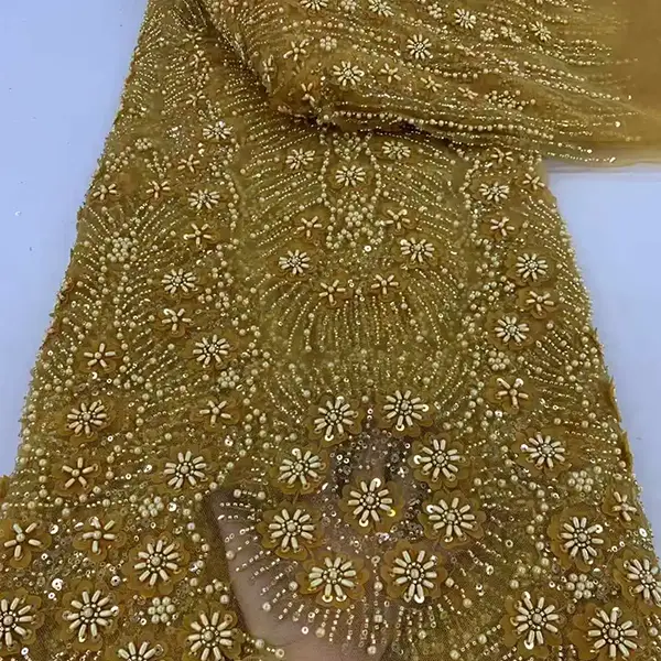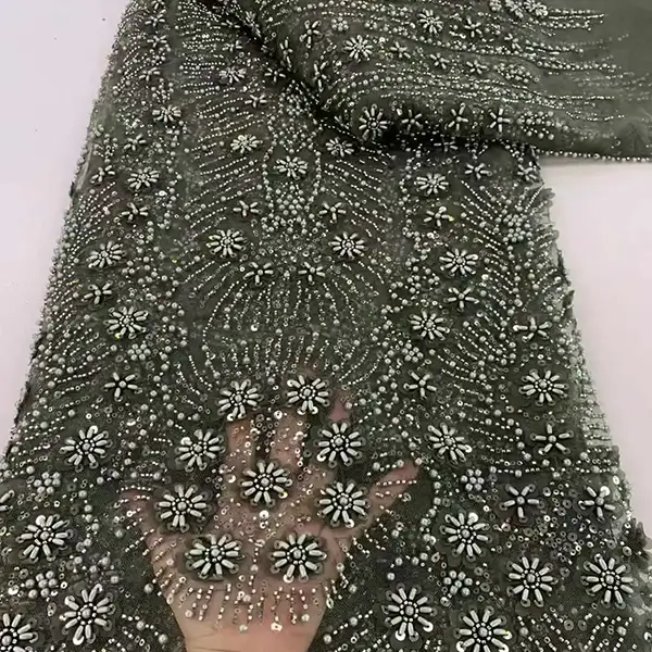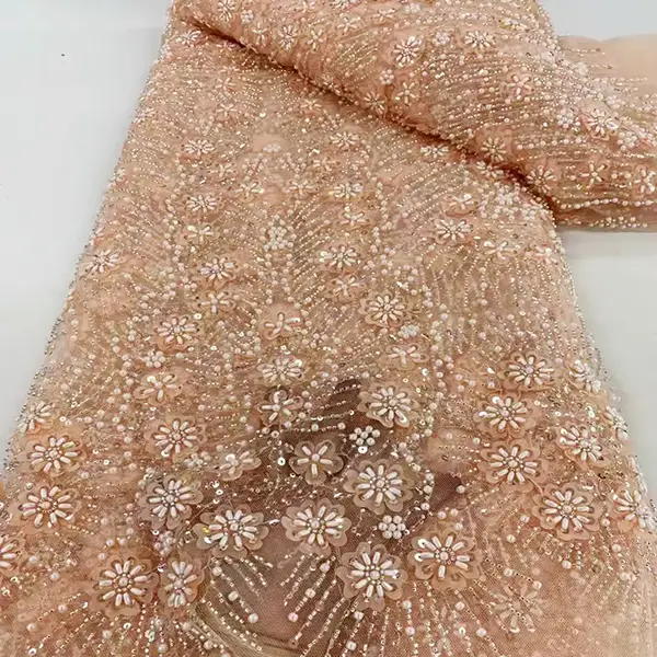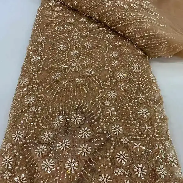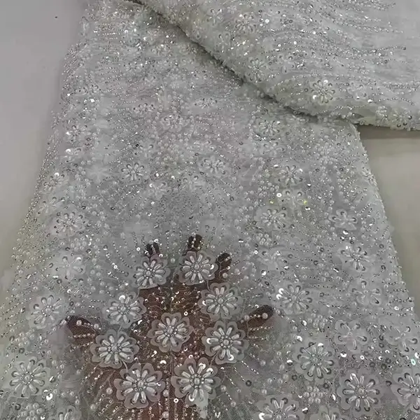 लक्जरी भारी बने कढ़ाई ट्यूल मोती लेस मेश बीडेड फैब्रिक जिसमें जटिल बीडवर्क और नाजुक फीता की विशेषता है। उच्च घनत्व सिलाई और हाथ से लागू मोतियों को शानदार बनावट बनाते हैं, दुल्हन के गाउन, शाम के पहनने और हाउते कॉउचर के लिए एकदम सही हैं। सुरुचिपूर्ण, उज्ज्वल और प्रीमियम गुणवत्ता।