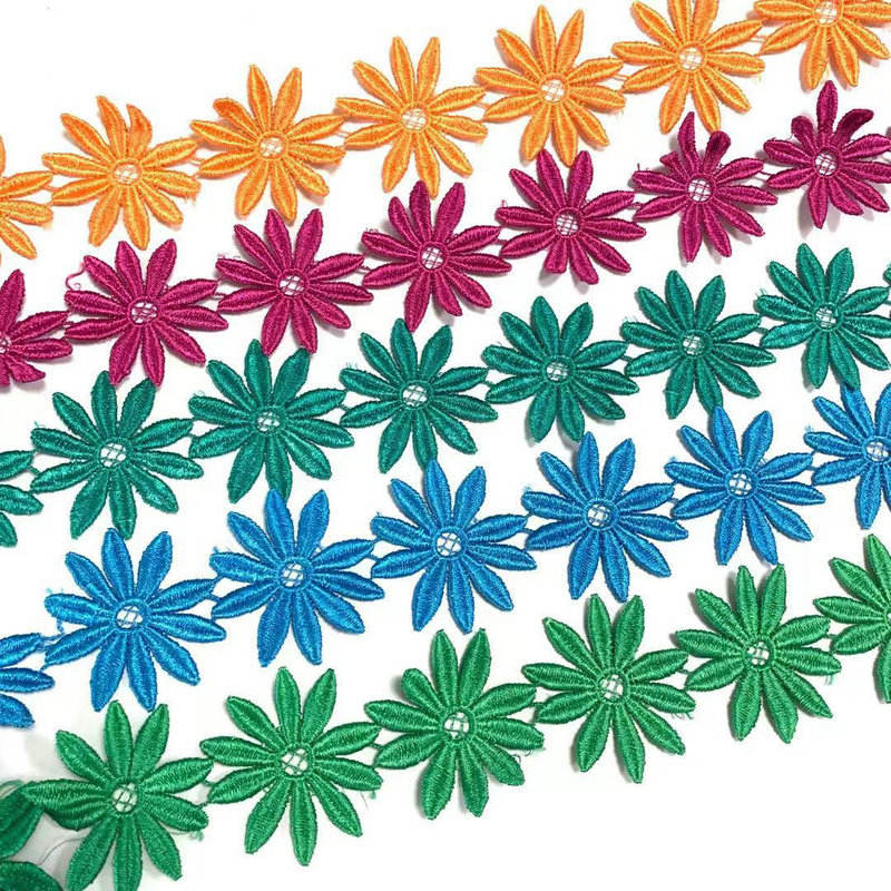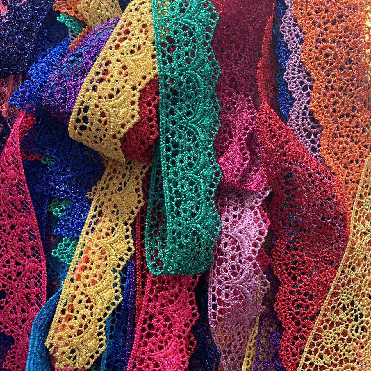 कस्टम पॉलिएस्टर लेस संकीर्ण कढ़ाई फीता ट्रिम मल्टी कलर उच्च गुणवत्ता वाले पॉलिएस्टर सामग्री से बना है, ठीक कढ़ाई शिल्प कौशल के साथ, इसमें समृद्ध रंग और समायोज्य चौड़ाई है। यह महिलाओं के कपड़ों, बच्चों के कपड़ों और घरेलू सामानों की सजावट के लिए उपयुक्त है