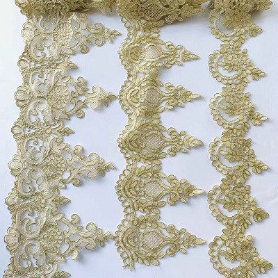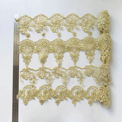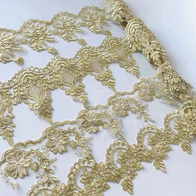 कशीदाकारी वेडिंग गिप्योर लेस आमतौर पर पॉलिएस्टर से बनाया जाता है। यह एक मजबूत और टिकाऊ फीता है जिसका उपयोग विभिन्न प्रकार के रचनात्मक तरीकों से किया जा सकता है, बोल्ड और ज्यामितीय डिजाइन बनाने से लेकर नाजुक पुष्प पैटर्न तक।