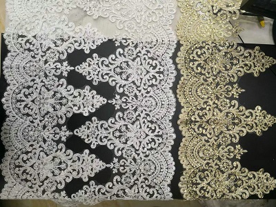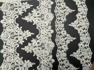 कशीदाकारी वेडिंग गिप्योर लेस एक प्रकार का भारी और घना फीता है जिसका उपयोग अक्सर शादी के कपड़े और अन्य औपचारिक गाउन में किया जाता है।