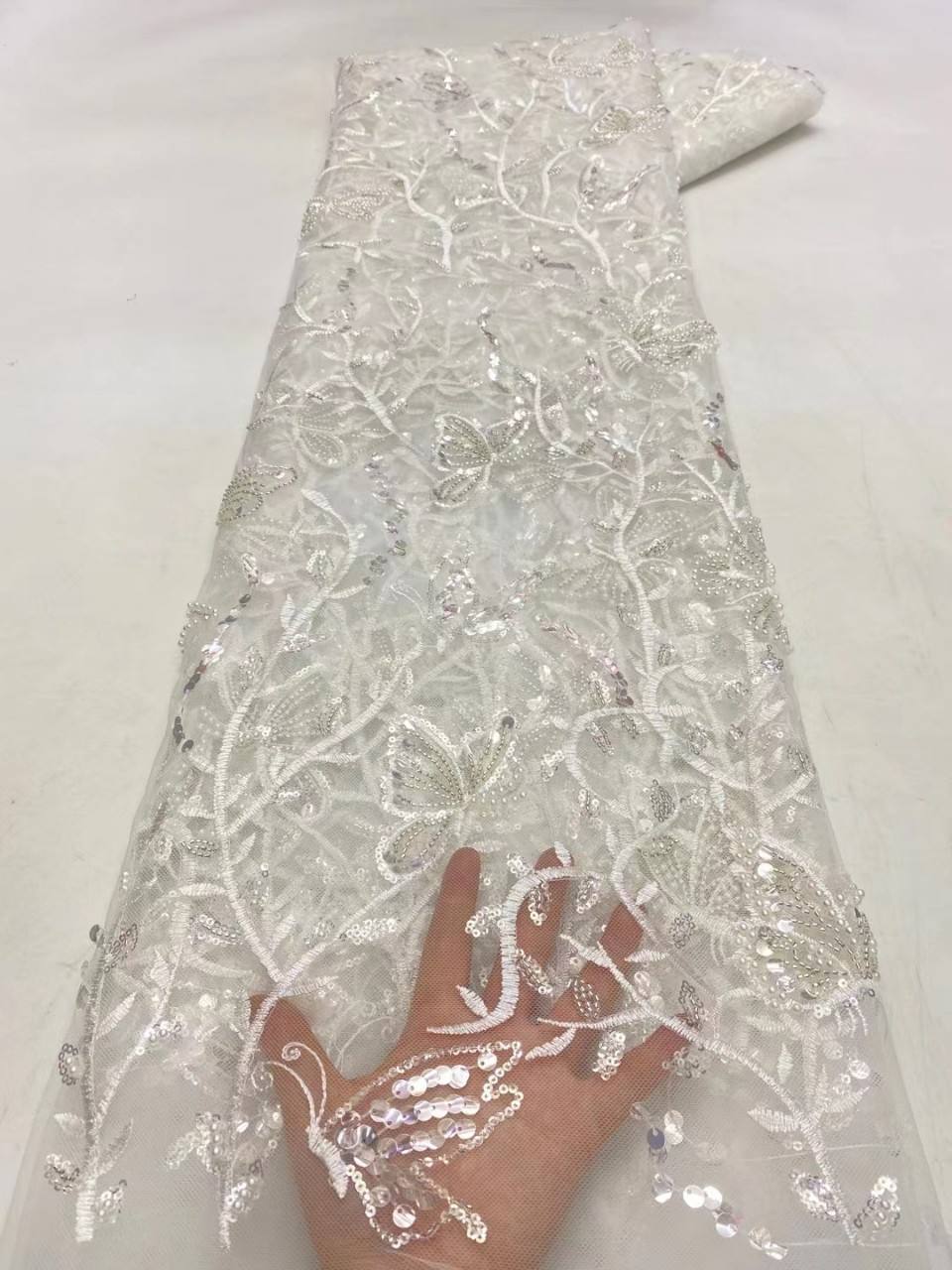 रंगीन शादी के फीता कपड़े 3 डी तितली मनके कशीदाकारी एक तीन-आयामी 3 डी तितली मनके कढ़ाई डिजाइन की विशेषता वाले यार्ड द्वारा कशीदाकारी, यह शानदार और उत्तम है, विशेष रूप से उच्च-अंत शादी के कपड़े और शाम के गाउन के लिए अनुकूलित है। प्रत्येक यार्ड को सेक्विन और बीडिंग लहजे के साथ बारीक कशीदाकारी किया जाता है। यह हल्का और सांस लेने योग्य है, दुल्हन के घूंघट, ड्रेस सजावट या शाम के गाउन बनाने के लिए उपयुक्त है।