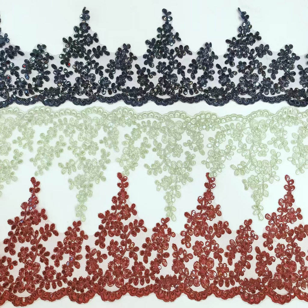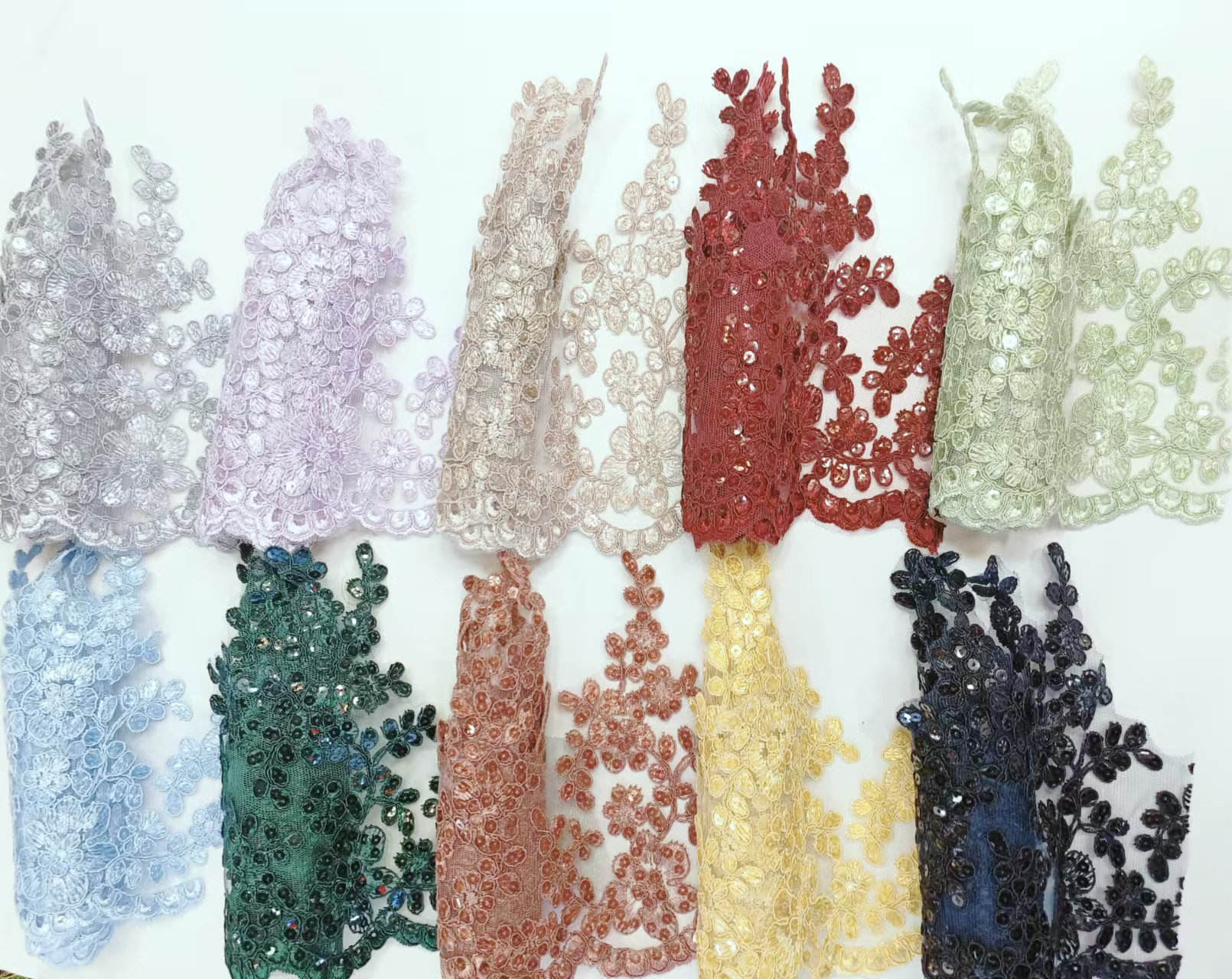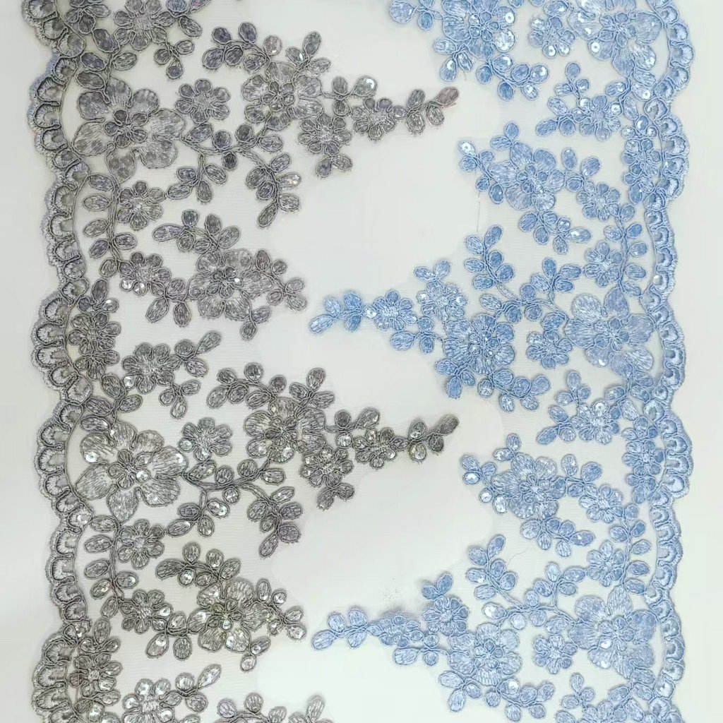 लक्जरी ब्राइडल फ्रेंच लेस सीक्वेंस वेडिंग ड्रेस बॉर्डर लेस वेडिंग लेस के लिए एक हाई-एंड फ्रेंच लेस बेस, हैंड-स्टिचेड शाइनी सेक्विन की विशेषता, पैटर्न एकदमे और चिकनी बनावट के साथ उत्तम और तीन आयामी हैं। उच्च-अंत सजावट विशेष रूप से शादी के कपड़े और शाम के गाउन के लिए डिज़ाइन की गई है, जो आइवरी व्हाइट, शैंपेन गोल्ड और अन्य टोन में उपलब्ध है, कस्टम चौड़ाई और पैटर्न का समर्थन करती है, एक शानदार और रोमांटिक शैली को उजागर करती है