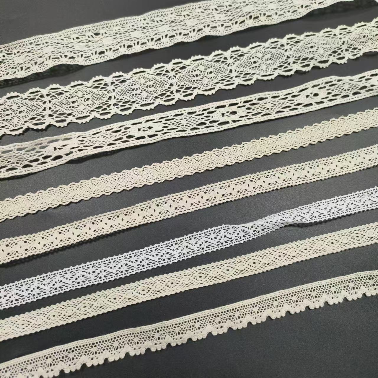 सफेद 100% संकीर्ण कपास फीता ट्रिम क्रोकेट कढ़ाई का फीता